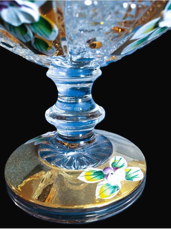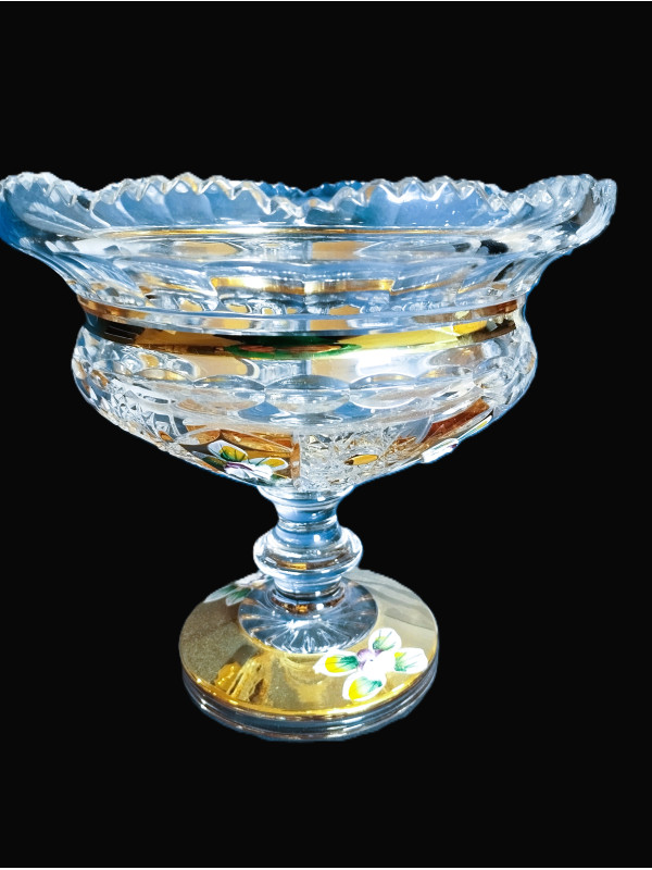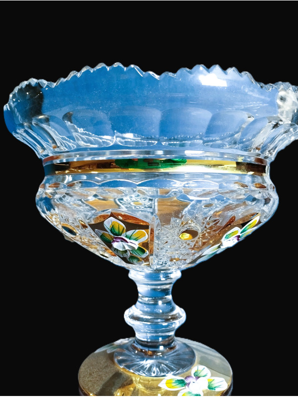 Bol ouvert, richement taillé, sur pied, taillé en or et en émail. Le bol a un diamètre de 21 cm.