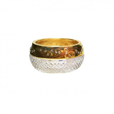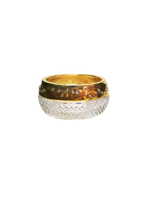 Bol décoratif en verre à décor de chardons taillés (appelé dos), d'or et incrusté de pierres. Il s'agit d'une pièce originale faite à la main. La taille du bol est de 20,5 cm.
