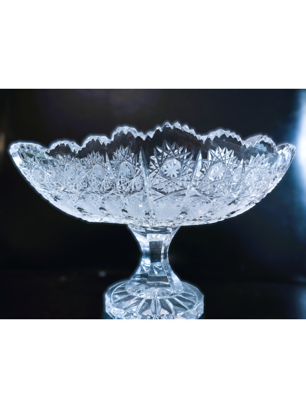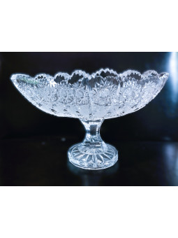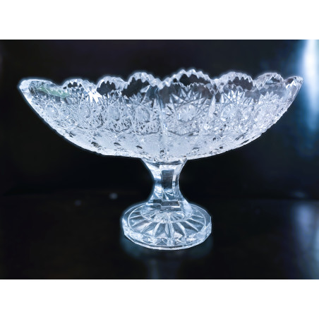 Bol richement taillé et biseauté sur pied. Le bol mesure 21 cm de long.