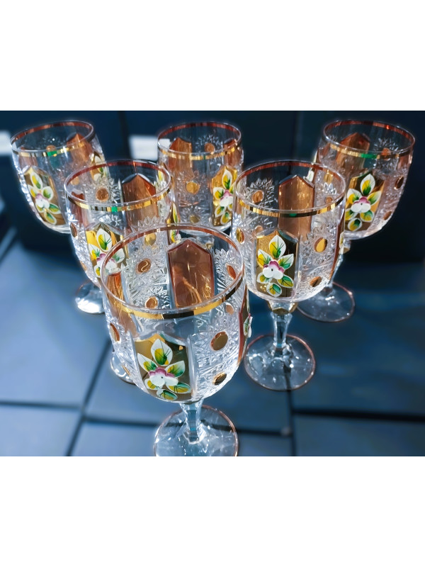 Verres à vin taillés Mirel, or et émail 200 ml, 6 pcs.