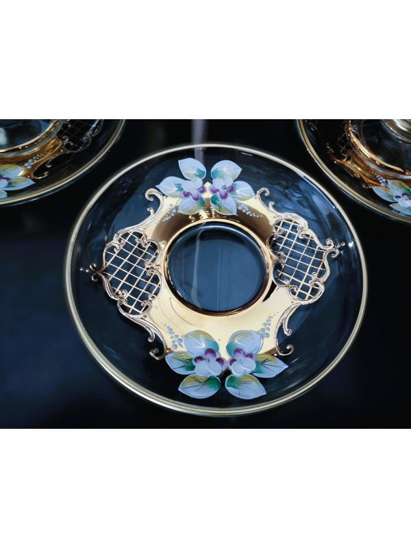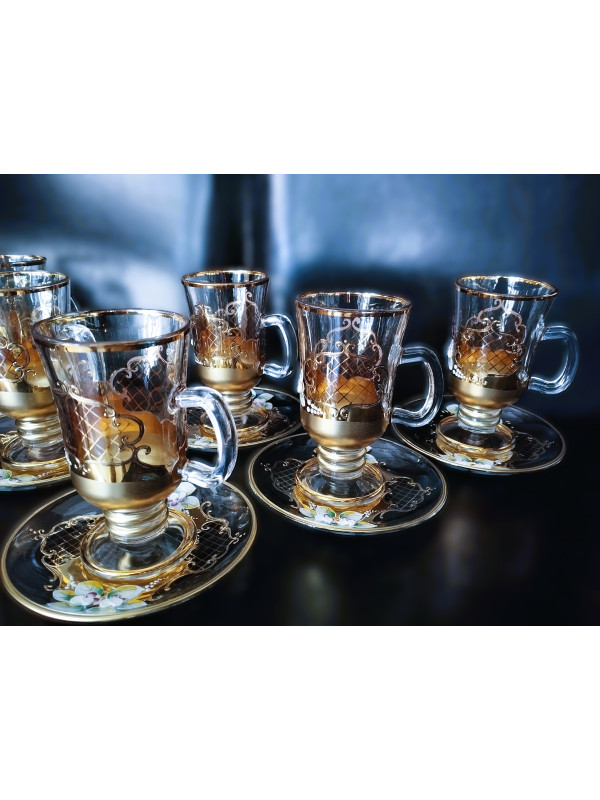 Verres à thé Venezia avec soucoupes, or et émail 6 + 6 pièces