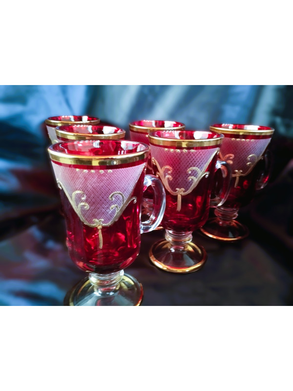 Luxueux verres à thé ornés de motifs dorés. Le service contient 6 pièces, contenance : 170 ml.