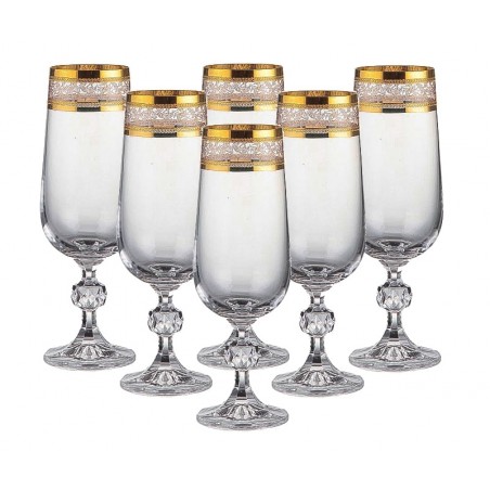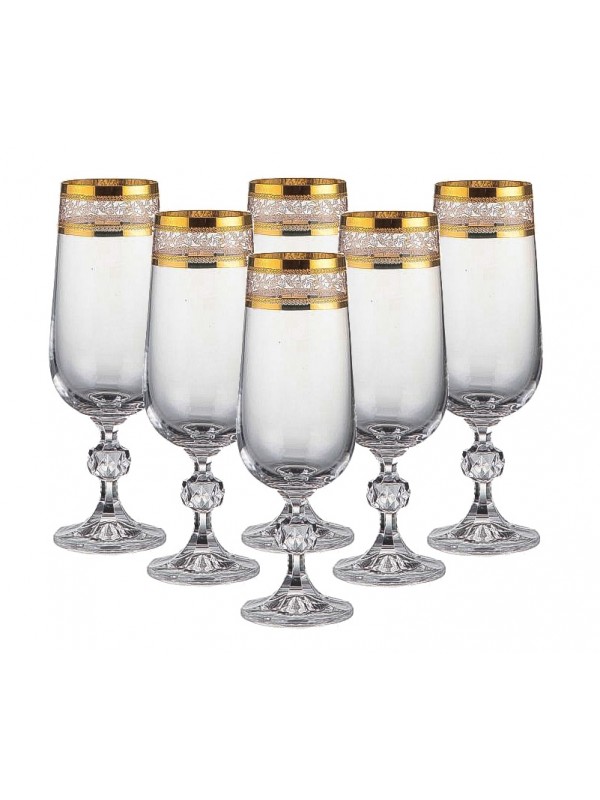 Verre à champagne Claudia avec or et ornements 180 ml, 6 pcs