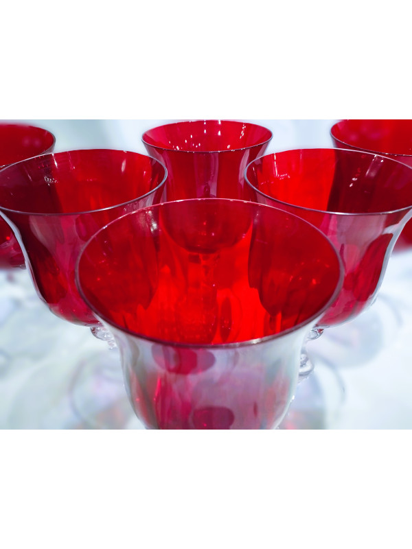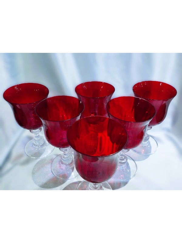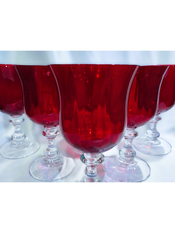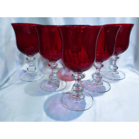 Lunettes rouges sur une jambe. Le volume du verre est de 200 ml et la hauteur est de 17 cm. L'ensemble contient six pièces.