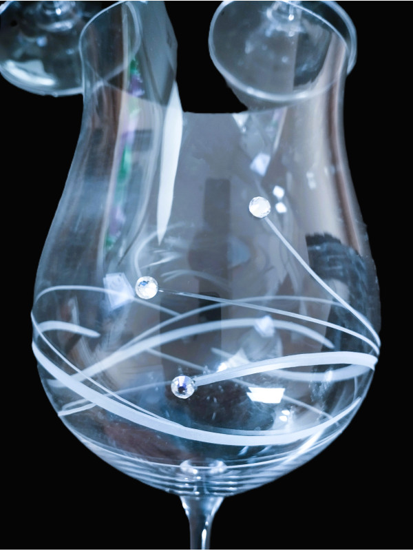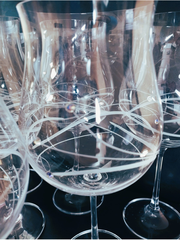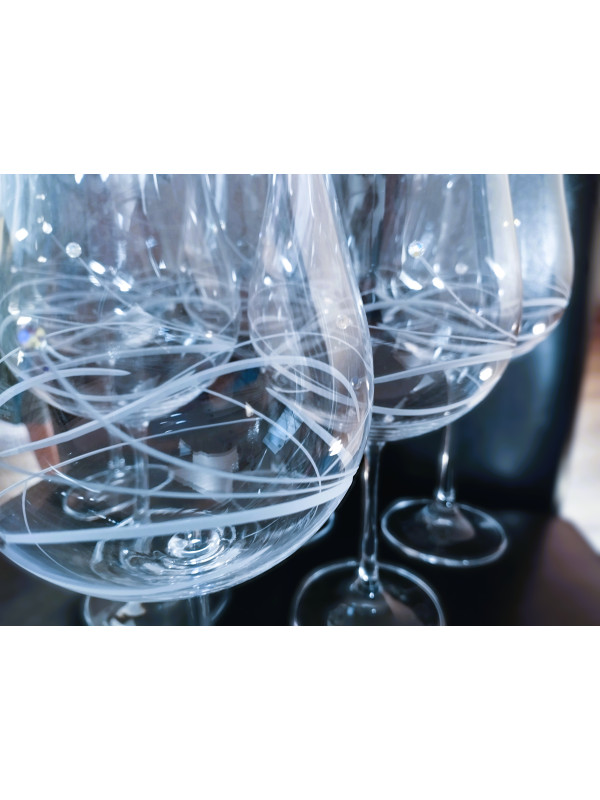 Ensemble de verres à vin rouge de la collection Ellen d'un volume de 640 ml, complété par des pierres en verre. Les verres sont fabriqués en cristal sans plomb. Cette collection est très populaire en raison de son utilisation pratique, de son design moderne et de son prix abordable.